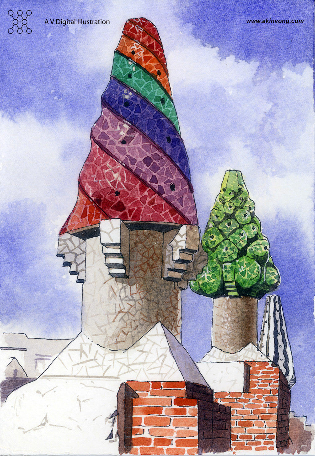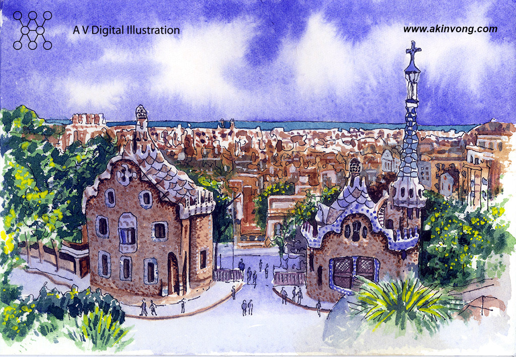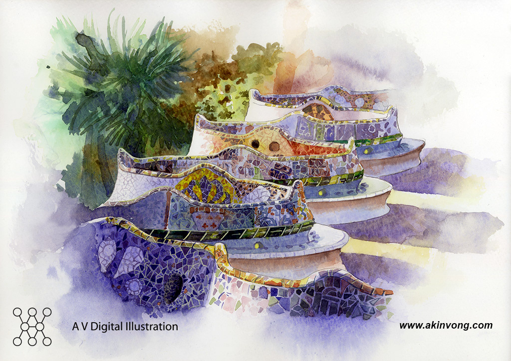 Water color illustration for Gaudi exhibition