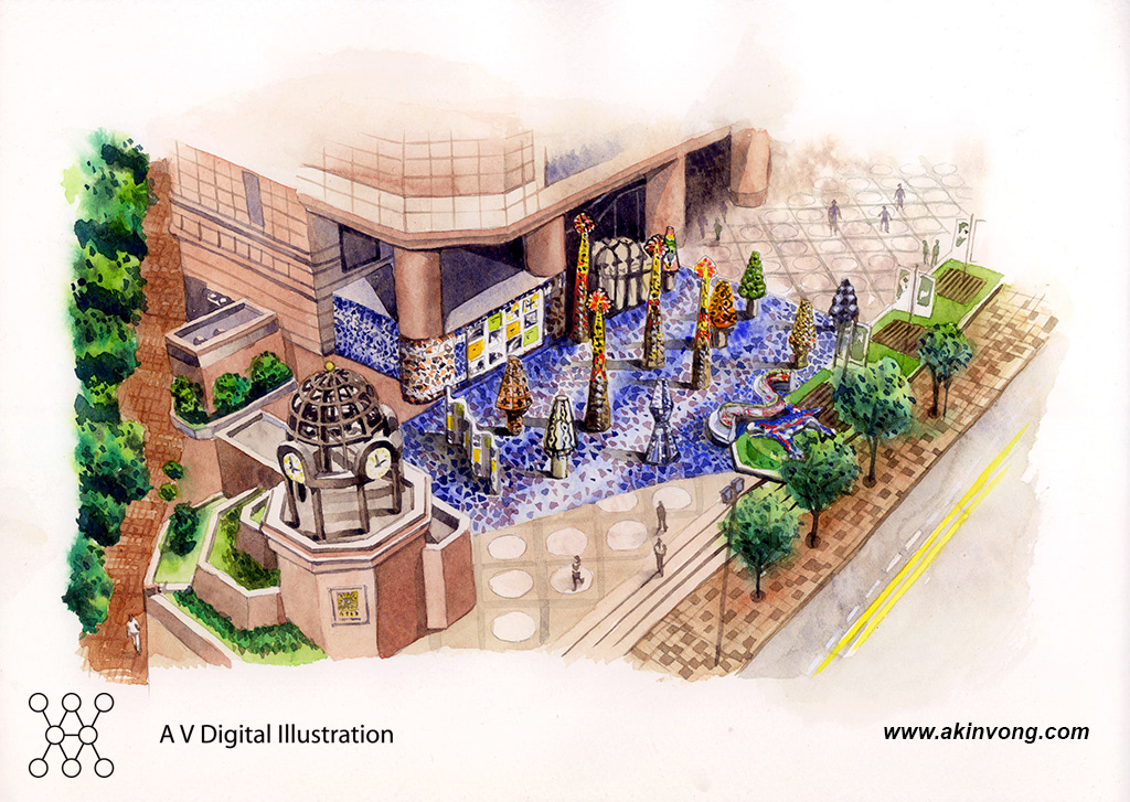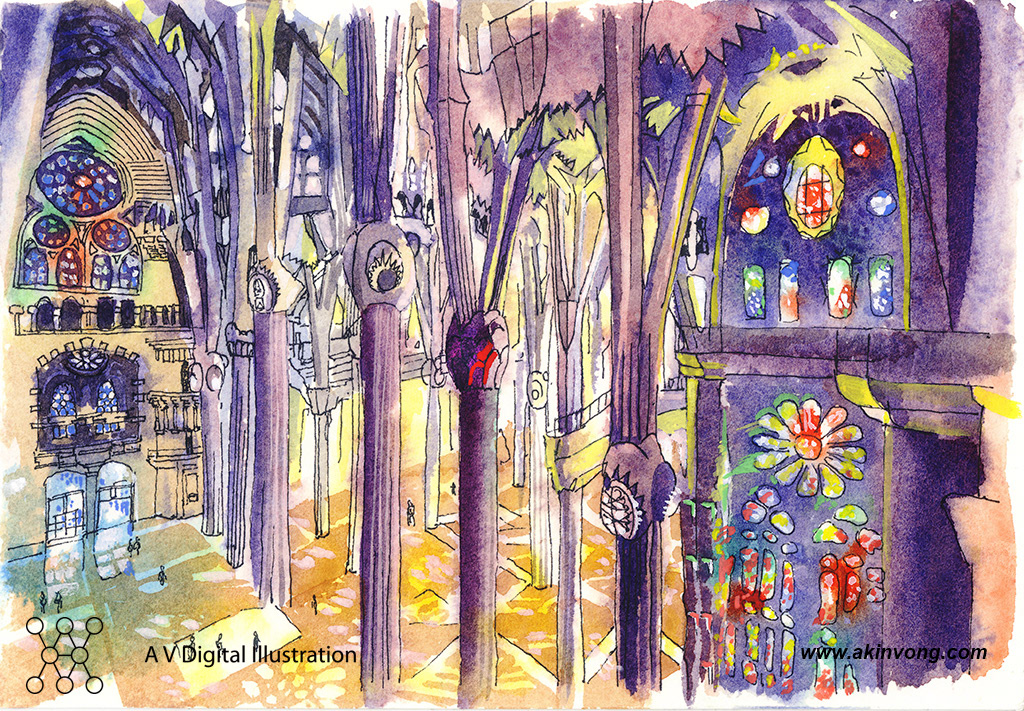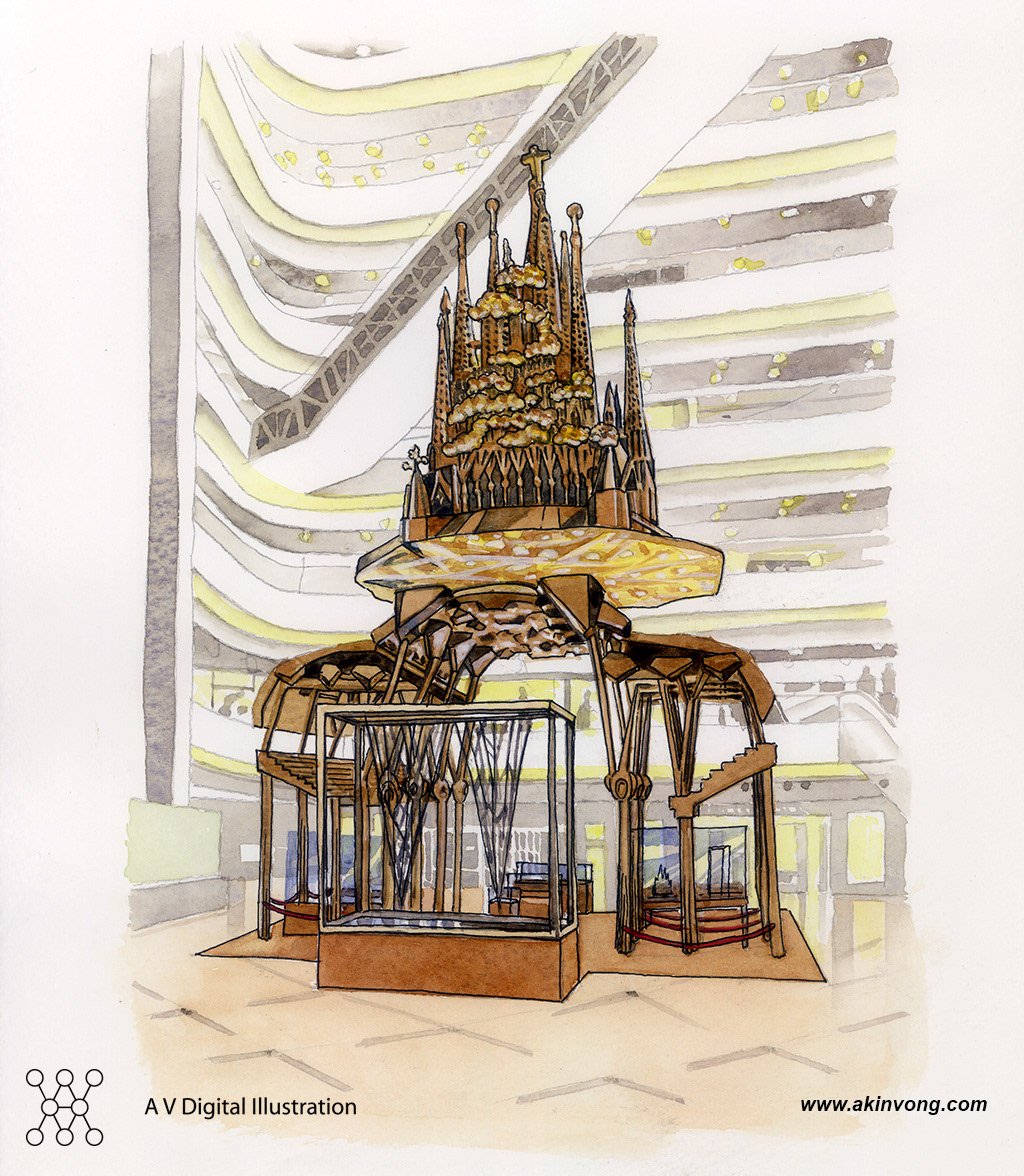 Water color illustration for Gaudi exhibition @ Hong Kong Times Square
