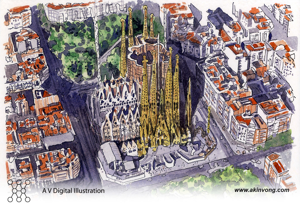 Water color illustration for Gaudi exhibition @ Hong Kong Times Square